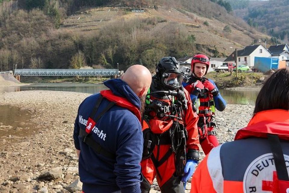 „Die Flutkatastrophe der Ahr hat gezeigt, wie wichtig ein gut organisierter und funktionierender Wasserrettungsdienst ist“, sagt Reiner Gerbes, stellvertretender Landesleiter der DRK-Wasserwacht in Rheinland-Pfalz und verantwortlicher Leiter des Wasserrettungszuges. Die Temperaturen seien für die erfahrenen Kräfte unerheblich. Um insbesondere im kalten Wasser selbst nicht zu unterkühlen, verfügen die DRK-Wasserretter über modernste Ausstattung, wie etwa chemieresistente Trockentauchanzüge mit Vollgesichtsmaske und Unterwassersprechfunk-Einheit.