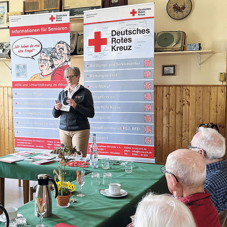 DRK_21.03.2024: Marion Simons stellte in Oberzissen den DRK-HausNotruf vor und stand dem Heimatverein Rede und Antwort. (Foto: Astrid Zens / DRK-Kreisverband Ahrweiler e.V.)