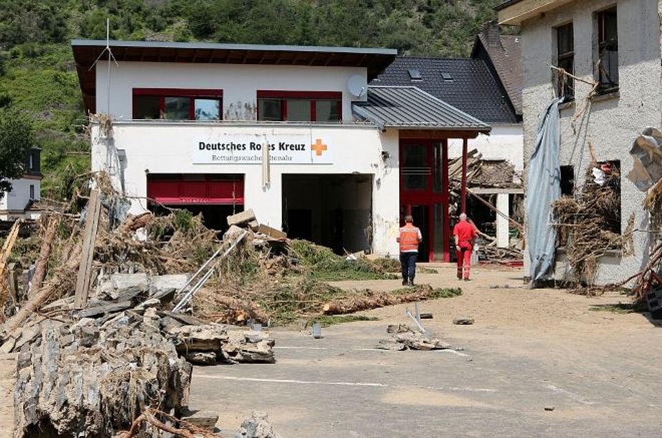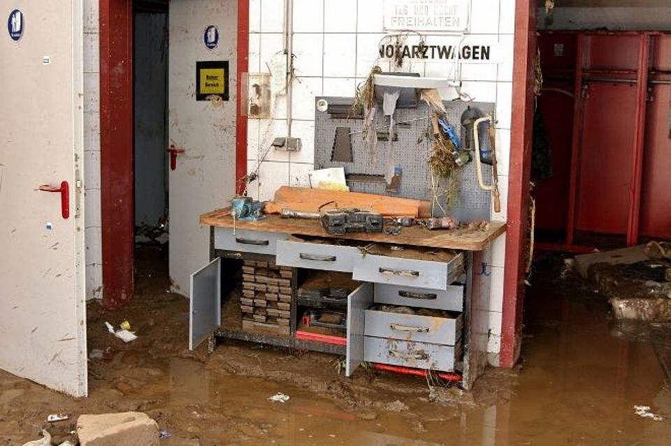 Die DRK-Rettungswache Altenahr, dessen Gebäuderückseite sich nahe der Ahr befindet, stand bis kurz vor der Dachkante des zweieinhalbgeschossigen Gebäudes in den Fluten. Glücklicherweise befand sich das diensthabende Einsatzteam bereits im Einsatz. Unvorstellbar was passiert wäre, wenn die Mitarbeiter in der Wache gewesen wären.