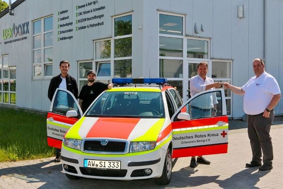 Durch den Einsatz während der Flutkatastrophe hatte das Fahrzeug und die Beschriftung allerdings sehr gelitten. Dem Problem nahmen sich Oliver Huhn von der Sinziger Firma Saubermänner Fahrzeugaufbereitung und Roman Förster, Inhaber der Sinziger Firma Werbaxx Werbetechnik, an. Nach der Gemeinschaftsaktion lassen beide Firmen innen und außen das Fahrzeug in neuem Glanz erstrahlen. Die Fahrzeugaufbereitung und die komplett neue Folierung und Beschriftung spenden die Firmen den Rettungskräften. „Damit wollen wir für den unermüdlichen Einsatz der ehrenamtlichen Rettungskräfte Danke sagen“, so Oliver Huhn und Roman Förster.