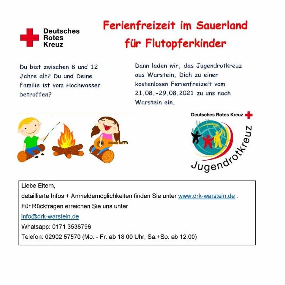 Rückfragen sowie die Anforderung eines Anmeldeformulars sind direkt an den DRK-Ortsverein Warstein e.V. zu richten. Falls ein Rückruf möglich ist und gewünscht wird, senden Interessierte eine Nachricht mit dem Betreff „Ferienfreizeit Warstein / Ahr“ per Whatsapp an 0171-35 36 796 oder per Mail an info@drk-warstein.de.