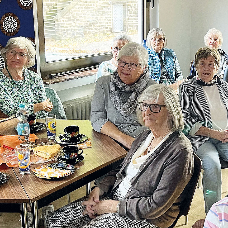 Die Tische waren liebevoll gedeckt, es brannten Kerzen und duftete nach Kaffee, die Seniorinnen und Senioren plauderten ausgelassen. Doch als Marion Simonis den Raum betrat und mit der Vorstellung des HausNotrufsystems begann, richteten sich die rund 30 Augenpaare und damit auch die Aufmerksamkeit ganz auf sie. Interessiert lauschten die Teilnehmenden dem informativen Vortrag über den DRK-HausNotruf, der Sicherheit in vertrauter Umgebung bietet und gesundheitlich eingeschränkten, behinderten oder betagten Personen erlaubt, weiterhin zuhause zu leben.