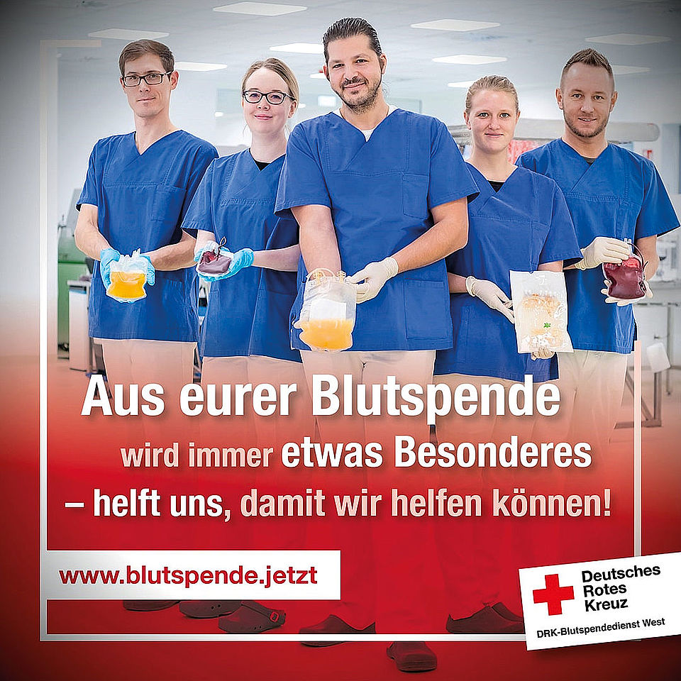 DRK_27.02.2023_1 Blutspende rettet Leben! Informationen zur Blutspende gibt es unter www.drk-blutspende.de oder bei unserer kostenfreien Servicehotline unter 0800 11 949 11 (montags-freitags). (Quelle: DRK Blutspendedienst West)