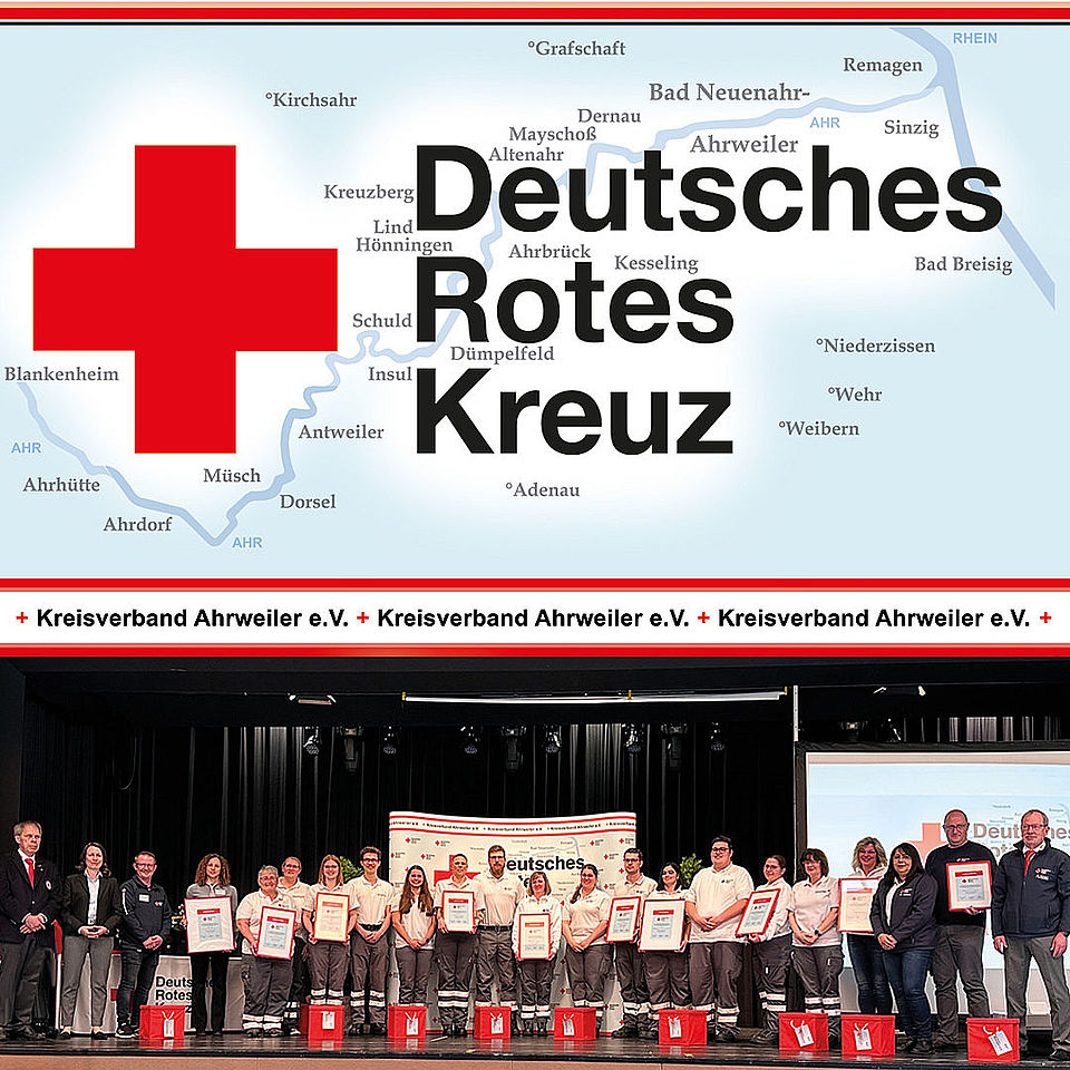 In seiner Begrüßungsrede wendete sich Achim Haag an die ehren- und hauptamtlich Mitarbeiter, die während der Corona-Pandemie und insbesondere während der Flutkatastrophe ihre eigenen Belange hintenanstellten und ihren Mitmenschen geholfen haben: „Mit großer Kompetenz haben Sie Hilfe geleistet und sind dabei an die Grenzen ihrer persönlichen Belastbarkeit gestoßen. Sie haben alle Funktionen erhalten und das in herausragender Weise. Für Ihr Engagement, den unermüdlichen Einsatz und die Hilfeleistungen gebührt Ihnen allen mein größter Dank.“, so Haag. Für den DRK-Kreisverbandspräsidenten und Landrätin Cornelia Weigand war es deshalb eine große Ehre, den neun DRK-Ortsvereinen (Adenau, Bad Breisig, Bad Neuenahr-Ahrweiler, Grafschaft, Niederzissen, Remagen, Sinzig, Wehr, Weibern) und ihren 932 aktiven Ehrenamtlichen sowie den hauptamtlichen Mitarbeitenden die Fluthilfemedaille des Landes Rheinland-Pfalz sowie eine Urkunde zu überreichen.