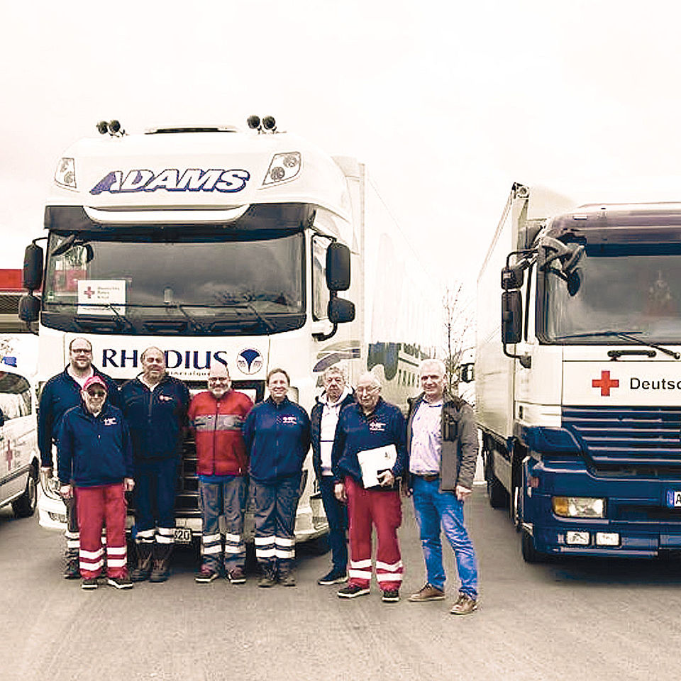 Schon im Januar erhielten die DRK-Ehrenamtlichen von ihren Kolleginnen und Kollegen aus der Ukraine eine Liste dringend benötigter Hilfsgüter wie unter anderem Hygieneartikel, Stromerzeuger, Elektroheizgeräte, Feuerwehrbekleidung, Beatmungsgeräte, Pflegebetten, Verbandsmaterial und Krankenhausbedarf. Das Team erhielt viele Sachspenden und beschaffte die nicht vorrätigen Materialien dank gesammelter Geldspenden. Nachdem alles gut in einem von der Firma Adams aus Niederzissen zur Verfügung gestellten Sattelzug, einem 25t LKW und einem MTW verstaut war, machte sich das siebenköpfige DRK-Team auf den Weg ins polnische Lublin, etwa 100 Kilometer westlich der ukrainischen Grenze. Aufgrund des Krieges in der Ukraine erhielten die Ehrenamtlichen keine Genehmigung, in die Ukraine zu fahren. Sie nutzten daher die guten Kontakte des Ukrainischen Roten Kreuzes mit den Polnischen Kolleginnen und Kollegen, die in Lublin über das Internationale Rote Kreuz ein Warenlager für Hilfsgüter verwalten und betreiben.