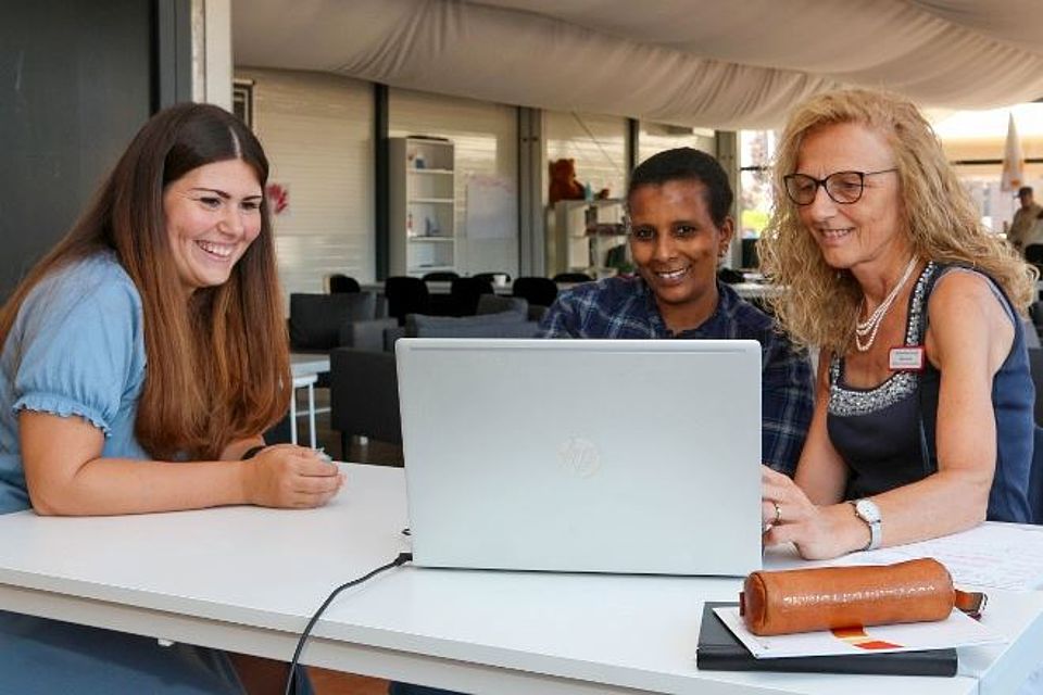 Marianne Hamer-Pietzsch bot spontan ihre ehrenamtliche Unterstützung an. Trotz der Belastung der Sanierung ihres durch die Ahrflut beschädigten Hauses nimmt sie sich seit Juni die Zeit, sich mit Aster Seyum Mekonen zu treffen und deutsche Sprachkenntnisse zu vermitteln. Dass sich Aster Seyum Mekonen, die vor ihrer Flucht in ihrem Heimatland Schreckliches erlebt hat, sich in der Umgebung des Begegnungszeltes wohl und sicher fühlt, ist ihr deutlich anzusehen. Unter den Teilnehmern des gemeinsamen Frühstücks im Begegnungszelt Grüner Weg in Sinzig möchte Aster Seyum Mekonen weitere Kontakte knüpfen und sich aktiv um Integration bemühen.
