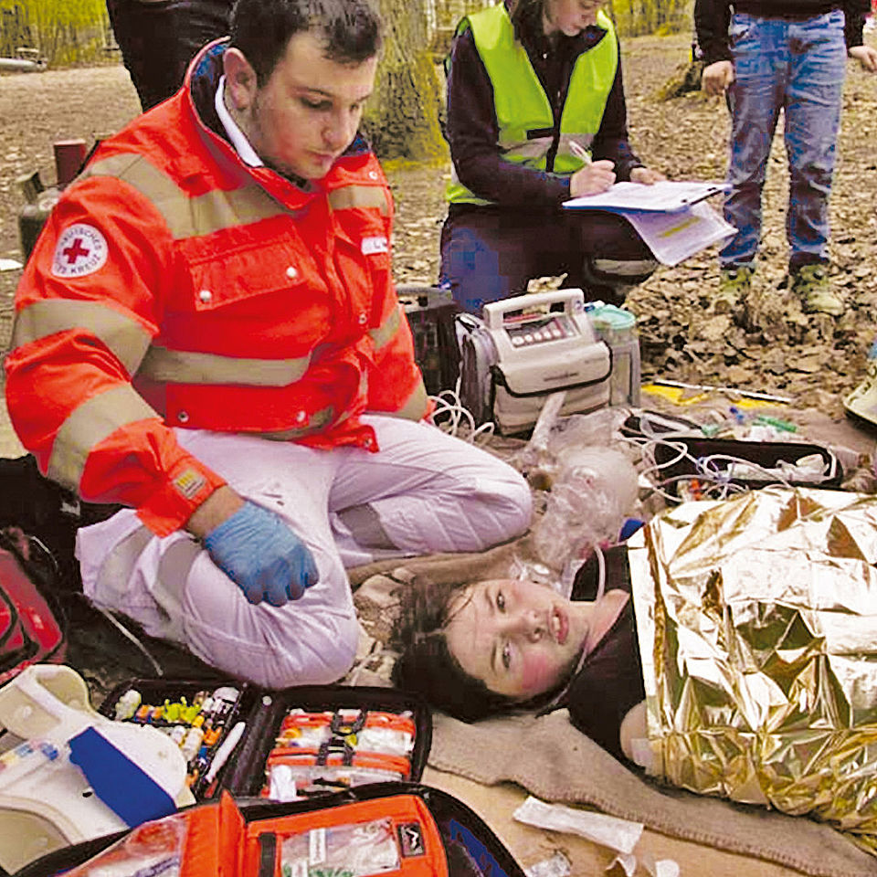 Das Highlight für die Azubis sind zweifelsohne die monatlich stattfindenden Praxistage. Im Rettungsdienst teilen sich diese in einen theoretischen und praktischen Teil auf. Es geht stets um besondere Einsatzlagen, bei denen die Auszubildenden ihre Fähigkeiten und Fertigkeiten in Schwerpunktthematiken ausbauen. Zuletzt waren die Azubis auf dem Nürburgring im Medical Center, wurden über die Aufgaben des Schockraums informiert und lernten wie eine verletzte Person schnell aus einem Rennwagen befreit werden kann. Zusammen mit zum Beispiel der DLRG oder der Feuerwehr werden gemeinsame Großübungen veranstaltet. So wurde beispielsweise in einem Wald ein Szenario nach einer Explosion simuliert. Dafür wurden fünf Personen so täuschend echt geschminkt, dass sie wie Schwerverletzte aussahen. Die Auszubildenden trainierten so die Zusammenarbeit mit der Feuerwehr und übten die Behandlung von Menschen mit Verbrennungen. In der Pflege werden bei den Praxistagen zum Beispiel das Setzen eines Katheters, das Anlegen von Verbänden oder das Blutdruckmessen geübt. Sobald es auf das Examen zugeht, erhöht Ines Schumacher von der Sozialstation die Anzahl der Übungstage, im Rettungsdienst findet eine einwöchige, interne Vorbereitung statt. „Kurz vor den Prüfungen stehen wir in engem Austausch mit unseren Azubis. Wir sind dann wandelndes Lehrbuch, Kummerkasten und Motivator in einer Person. Empathie und Fingerspitzengefühl sind in dieser Zeit unser ständiger Begleiter. Wir fiebern richtig mit den Auszubildenden mit und freuen uns genauso wie sie selbst, wenn sie ihr Examen bestanden haben “, sagt Zeitler