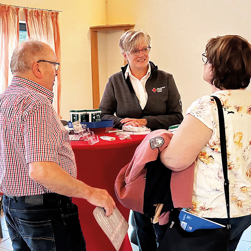 DRK_10.08.2023_2: Nach ihrem Vortrag stand Marion Simonis, Leiterin des DRK-HausNotrufs, den Mitgliedern der Cardiosportgruppe Rede und Antwort. (Foto: Jeannette Zimmermann / DRK-Kreisverband Ahrweiler e.V.)