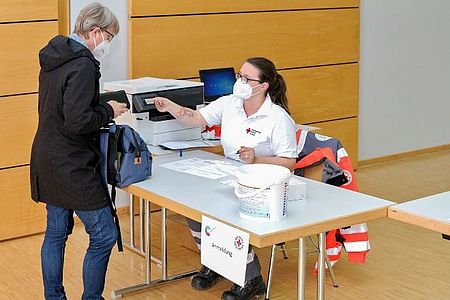 Kreis Ahrweiler. Jahrzehntelang klang am Weiberdonnerstag Karnevalsmusik durch die Gänge des Seniorenheims St. Maria-Josef in Ahrweiler. Dieses Jahr herrscht Stille. Dennoch huschen ein Häschen, ein Engelchen und ein Teufelchen, eingehüllt in blauen Einmalkitteln, mit FFP-2-Mundschutz, Einmalhandschuhen und Schutzbrille, über die Flure von Zimmer zu Zimmer. Es sind die ehrenamtlichen Kräfte eines mobilen Impfteams vom Deutschen Roten Kreuz (DRK) im Ahrkreis. Auch an Schwerdonnerstag sind die freiwilligen Helfer im Einsatz, um in der seit nun etwa einem Jahr währenden Corona-Pandemie zu helfen.