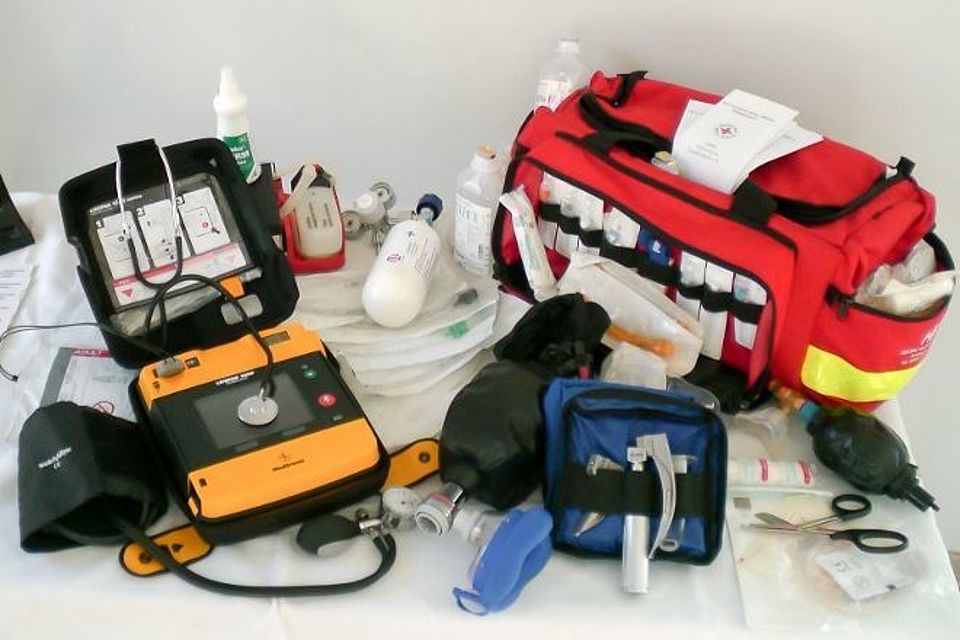 Helfer vor Ort machen Herz-Lungen-Wiederbelebung. Helfer vor Ort betreuen die Patienten. Helfer vor Ort haben eine Notfall-Ausrüstung. Dazu gehören Mess-Geräte für Blut-Druck und Blut-Zucker. Und Verband-Material.